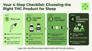 Wenn Sie den legalen medizinischen Weg gehen, stellen Sie sicher, dass Sie sichere, geprüfte und konstant dosierte Produkte erhalten – die drei wichtigsten Voraussetzungen für einen erholsamen Schlaf.